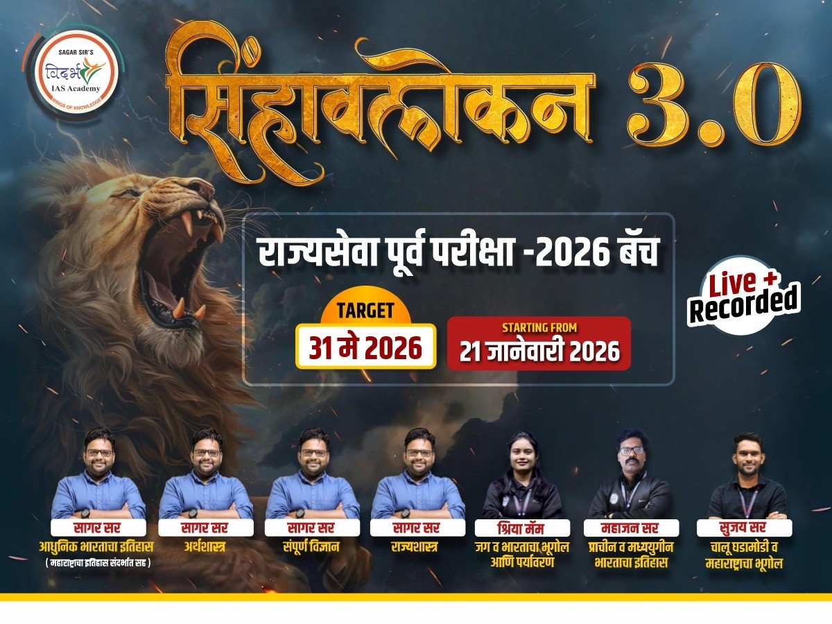 MPSC - महाराष्ट्र नागरी राजपत्रित सेवा संयुक्त पूर्व परीक्षा FAST -TRACK 2026 बॅचची वैशिष्ट्ये 01) बॅचमधील सर्व लेक्चर्स हे Live+Recorded राहतील. 02) लेक्चर्स लाईव्ह प्रमाणेच रेकॉर्डेड असल्यामुळे विद्यार्थी आपल्या सोयीने लेक्चर पाहू शकतात. 03) रेकॉर्डेड लेक्चर पाहण्यावर वेळेची तसेच वारंवारतेची मर्यादा नसेल म्हणजेच विद्यार्थी रेकॉर्डेड लेक्चर कितीही वेळा पाहू शकतात. 04) इतिहास ,अर्थशास्त्र ,विज्ञान हें विषय सागर सर घेतील . 05) राज्यशास्त्र हा विषय सागर सर घेतील . 06) पंचायतराज हा विषय सुजय सर घेतील . 07) प्राचीन व मध्ययुगीन इतिहास हा विषय श्रीपाद महाजन सर घेतील . 08) चालू घडामोडी सुजय सर घेतील . 09) भूगोल हा विषय सागर सर व श्रेया मॅम घेतील . 10) महाराष्ट्राचा भूगोल हा विषय सुजय सर घेतील. 11) पर्यावरण हा विषय श्रेया मॅम घेतील 12) चालू घडामोडी या विषयाची (सॉफ्ट कॉपी) दिल्या जाईल . 13) module मध्ये दिल्याप्रमाणे दिलेल्या तारखेला व ठरलेल्या शिक्षकामार्फत 14) बॅचचा कालावधी मे-2026 राहील. 15) लॅपटॉप वर बघू शकता. 16) या कोर्स मध्ये घरपोच साहित्य मिळणार नाही. त्यासाठी तुम्ही वाचत असलेले साहित्यच वाचावे. 17) एकदा बॅच घेतल्यानंतर कुठल्याही प्रकारे नंबर चेंज करून मिळणार नाही. 18) FEES NON-REFUNDABLE. संपर्क :- 85530370674 / 8668920552 / 9067580048
